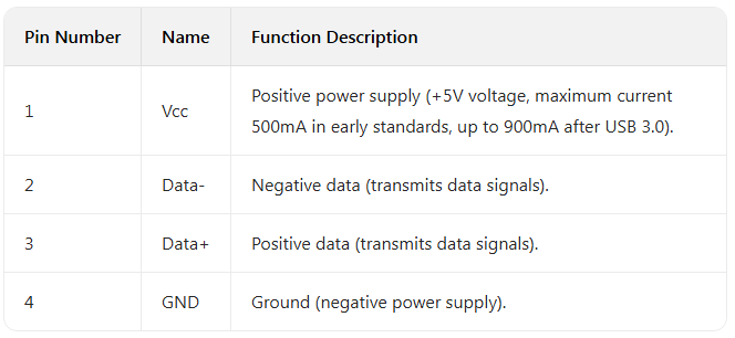 2. Pin Definition (Standard Type-A Interface, 4-pin design)