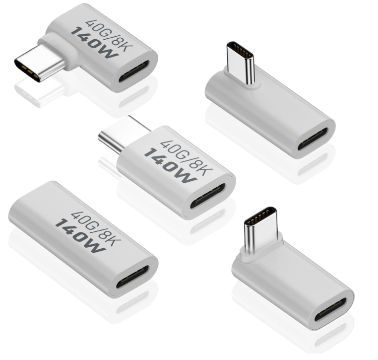 USB C Extension Adapter, 40Gbps Data, 140W Power, 8K Video, 90 Degree USB C Adapter Support for Thunderbolt Devices, Notebook, Tablet & Phone, in White,