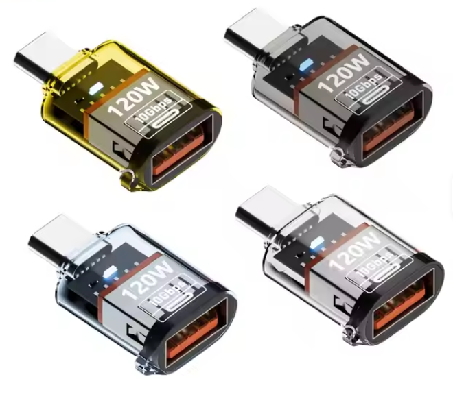 Type C to USB a Converter to Type C Fast Charging 120W 10Gbps Transparent USB 3.2 a to C Adapter for Mobile Phones Data Transfer